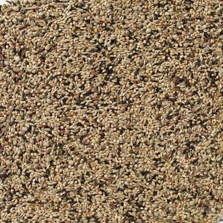 Composition : Alpistes 36,5%, millet blanc 22%, millet jaune 19%, chanvre 6%, millet japonais 6%niger 5%, millet rouge 3%, graines de lin 2,5%